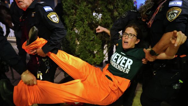 По его данным, в начале собрания на площади Хабима Верховный суд постановил, что силовики не имеют права разгонять акции, если в них участвует менее 600 человек. Когда количество протестующих превысило эту отметку, полиция объявила мероприятие незаконным и начала его разгон. В результате произошли столкновения, после которых 17 человек были задержаны и доставлены в полицейский автобус рядом с площадью.